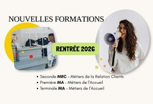 🎓 Nouvelles formations rentrée 2026 : Seconde Métiers de la Relation Client & Bac Pro Métiers de l’Accueil